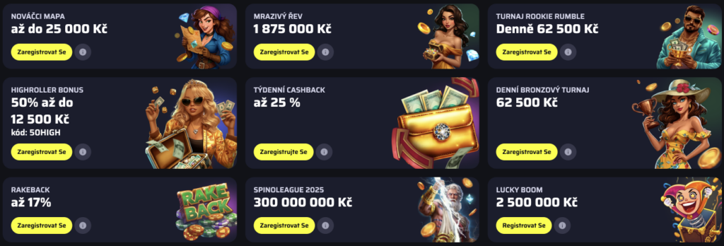 - Třetí vklad: 50% bonus až do 5 000 Kč.